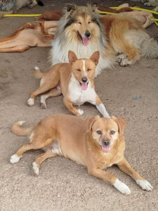 Horrible what they’ve lived through, tied with short chains, all full of poop, a horrible smell and them, six bitches and a puppy, with ticks and fleas. Seprona has acted and we with little space and little means, we could not say NO and we have taken over. Two of them have a chip in the name of the person who had them and of course, he has handed them over, the others are without a chip.